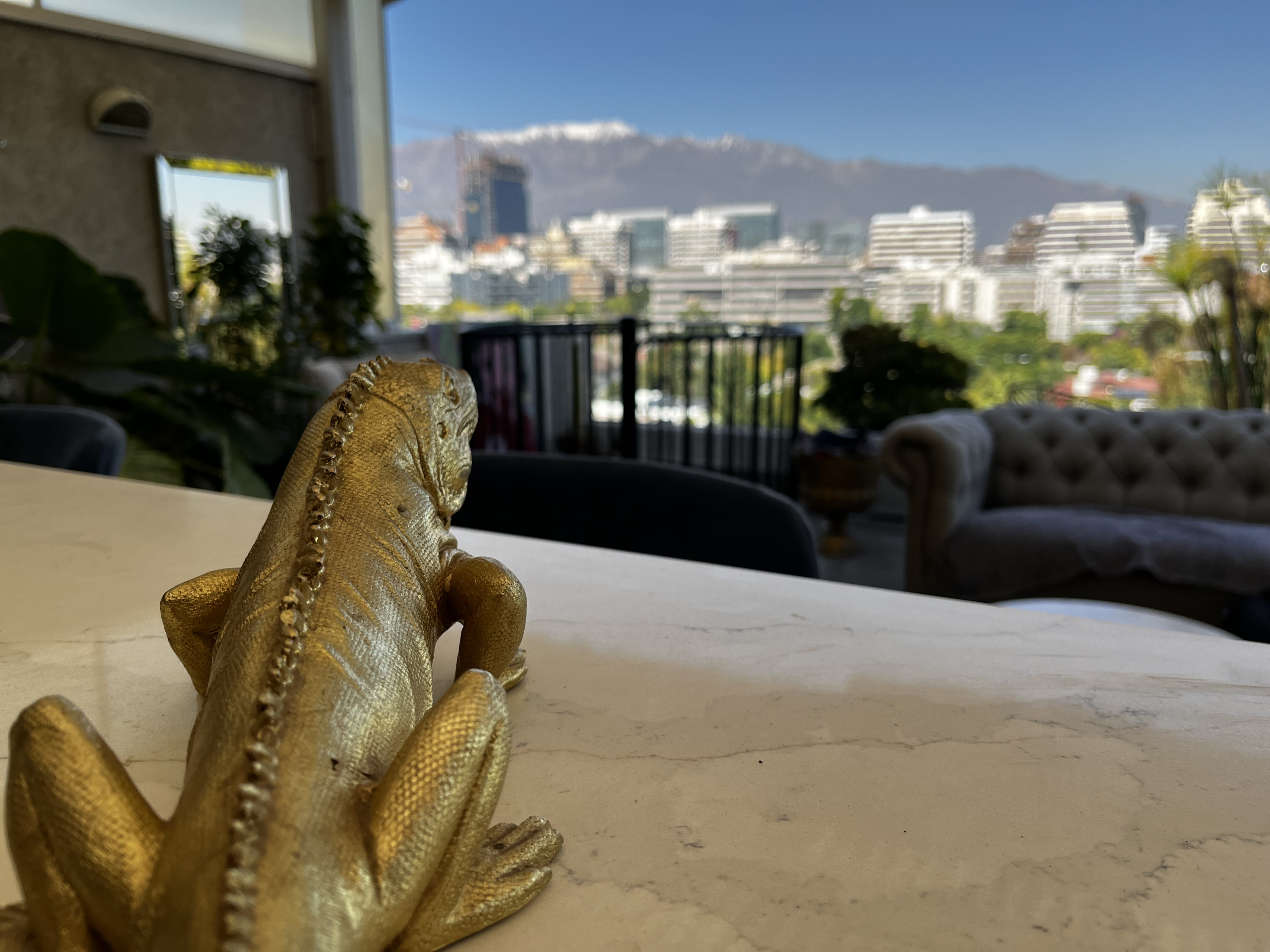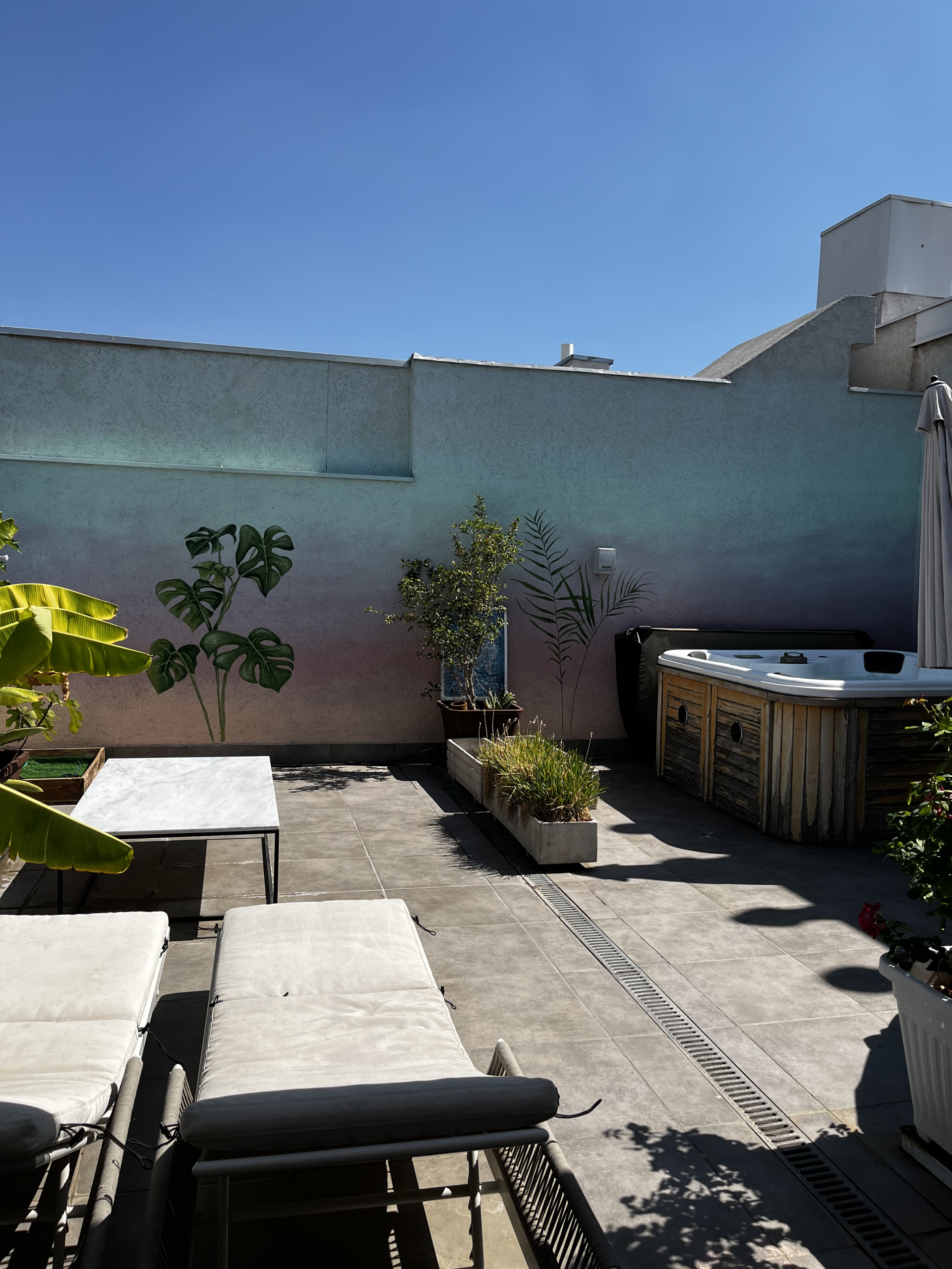 Desde la terraza hay una escalera de caracol para llegar a una azotea espectacular con vista a la cordillera, jacuzzi , una gran barra de obra y un espacio lounge muy amplio.